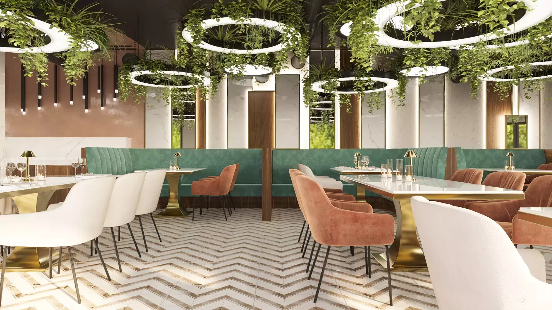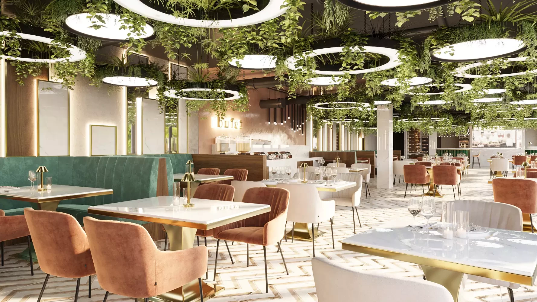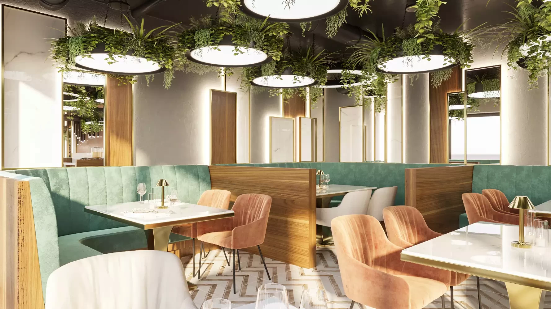 Ogród restauracji to prawdziwa zielona enklawa pod… palmami! W ich cieniu każdy może usiąść