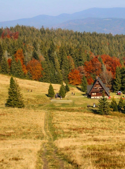 jeden z najpiękniejszych widokowo szlaków Beskidu Żywieckiego. Trasa słynie z rozległych hal i klimatycznego schroniska PTTK.