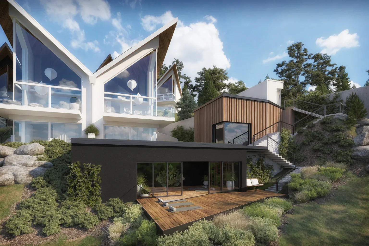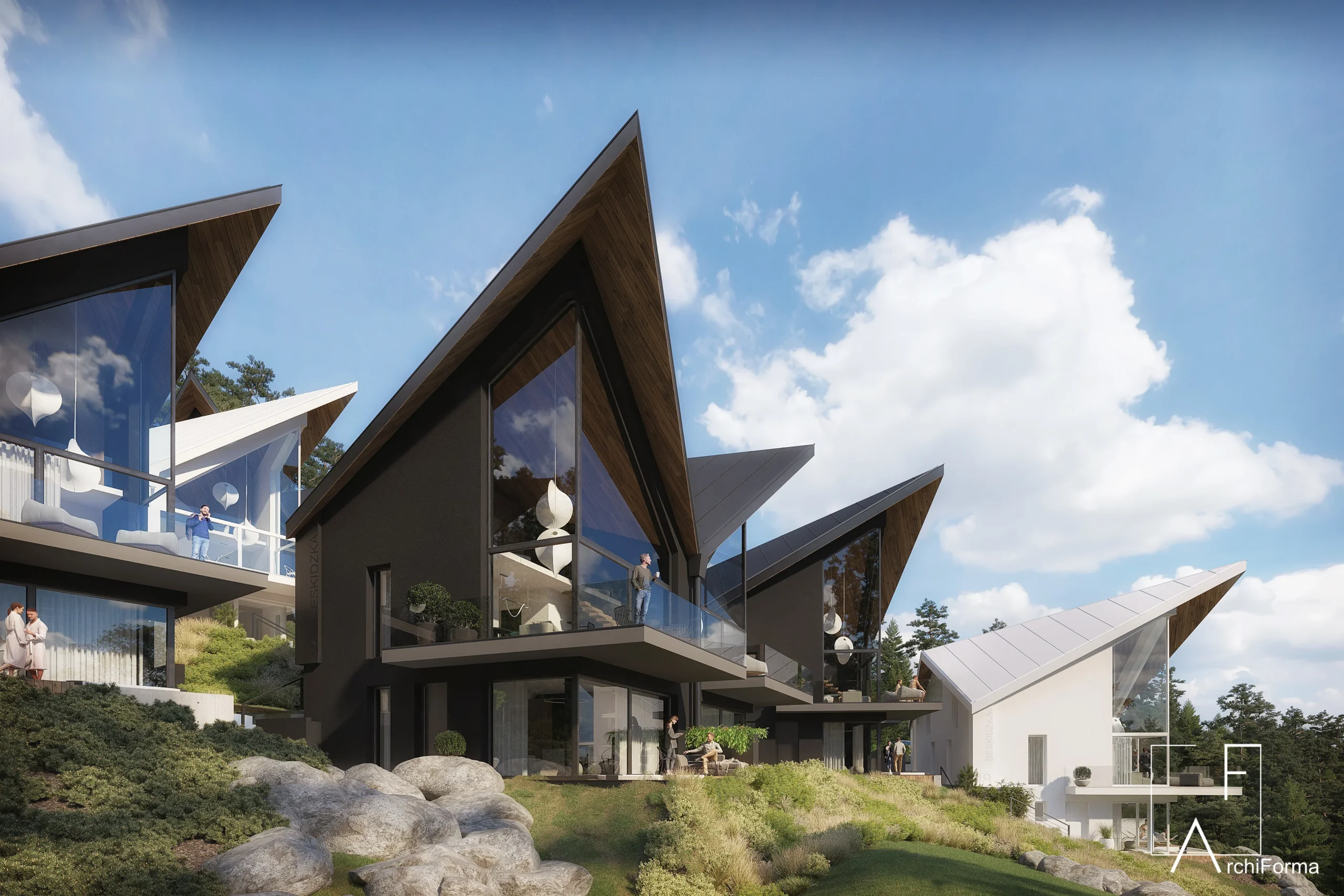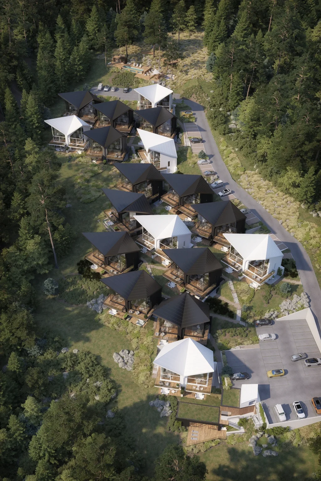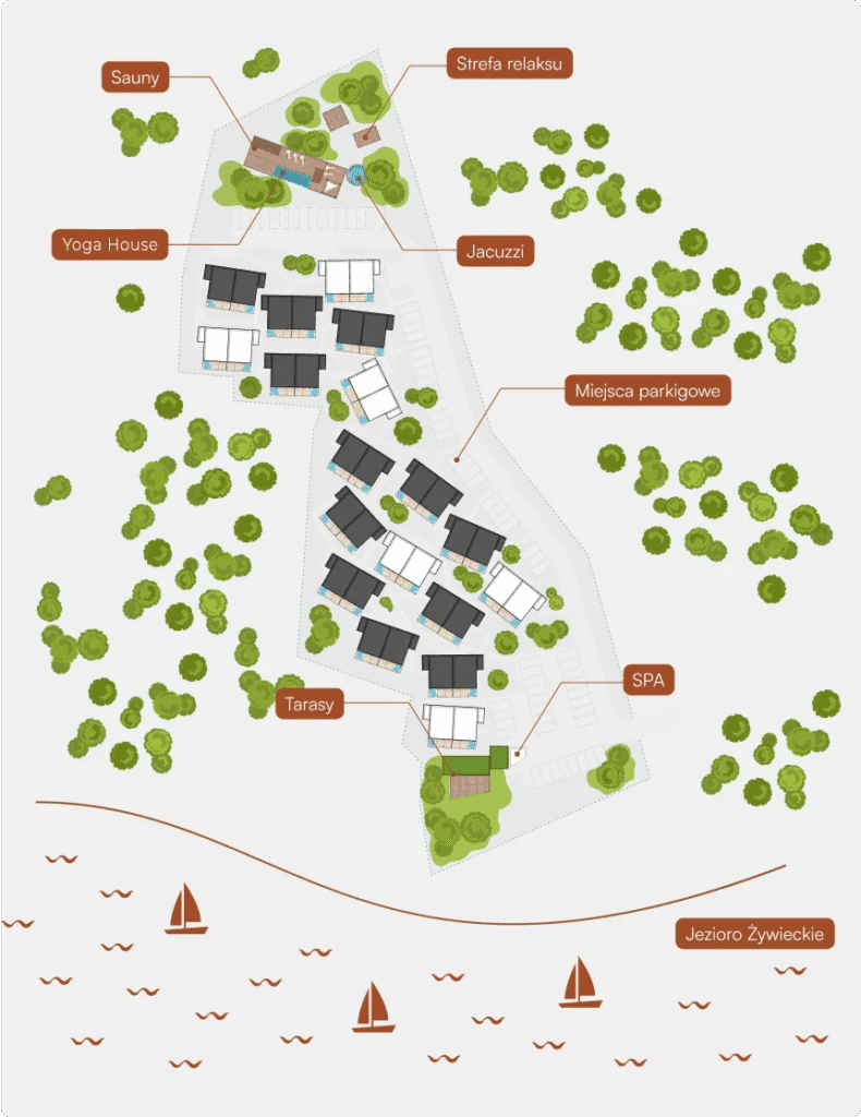 to łącznie 18 ekologicznych vilii położonych w samym środku lasu, na południowym stoku bezpośrednio nad Jeziorem Żywieckim, czyli lokalizacji, w której sezon turystyczny trwa cały rok.