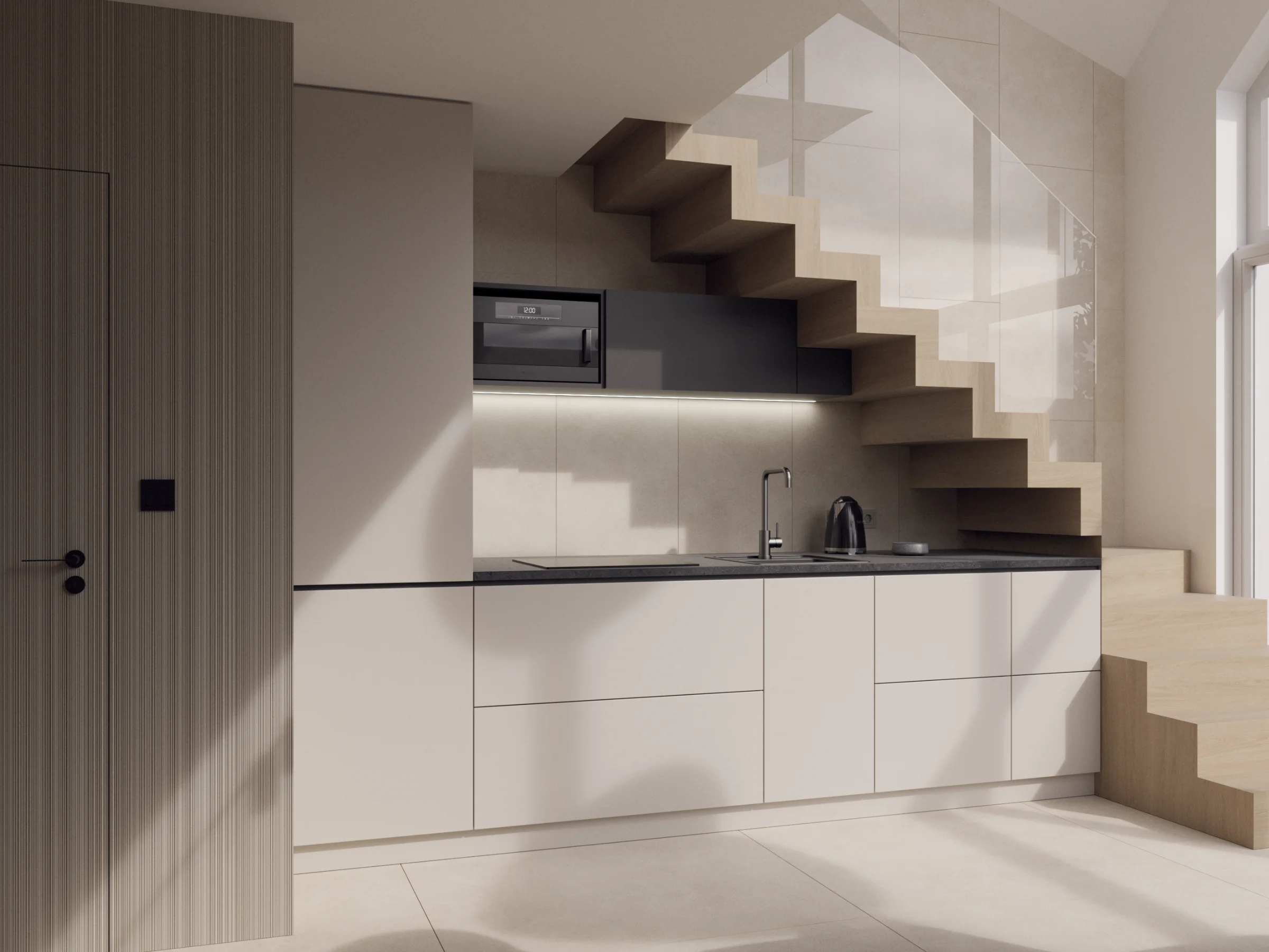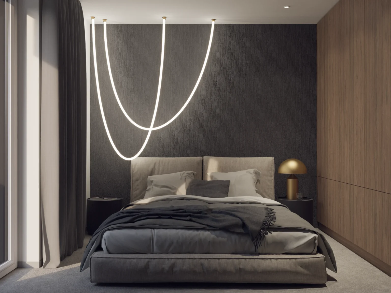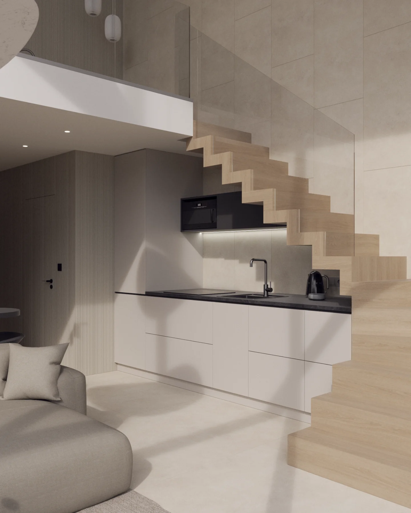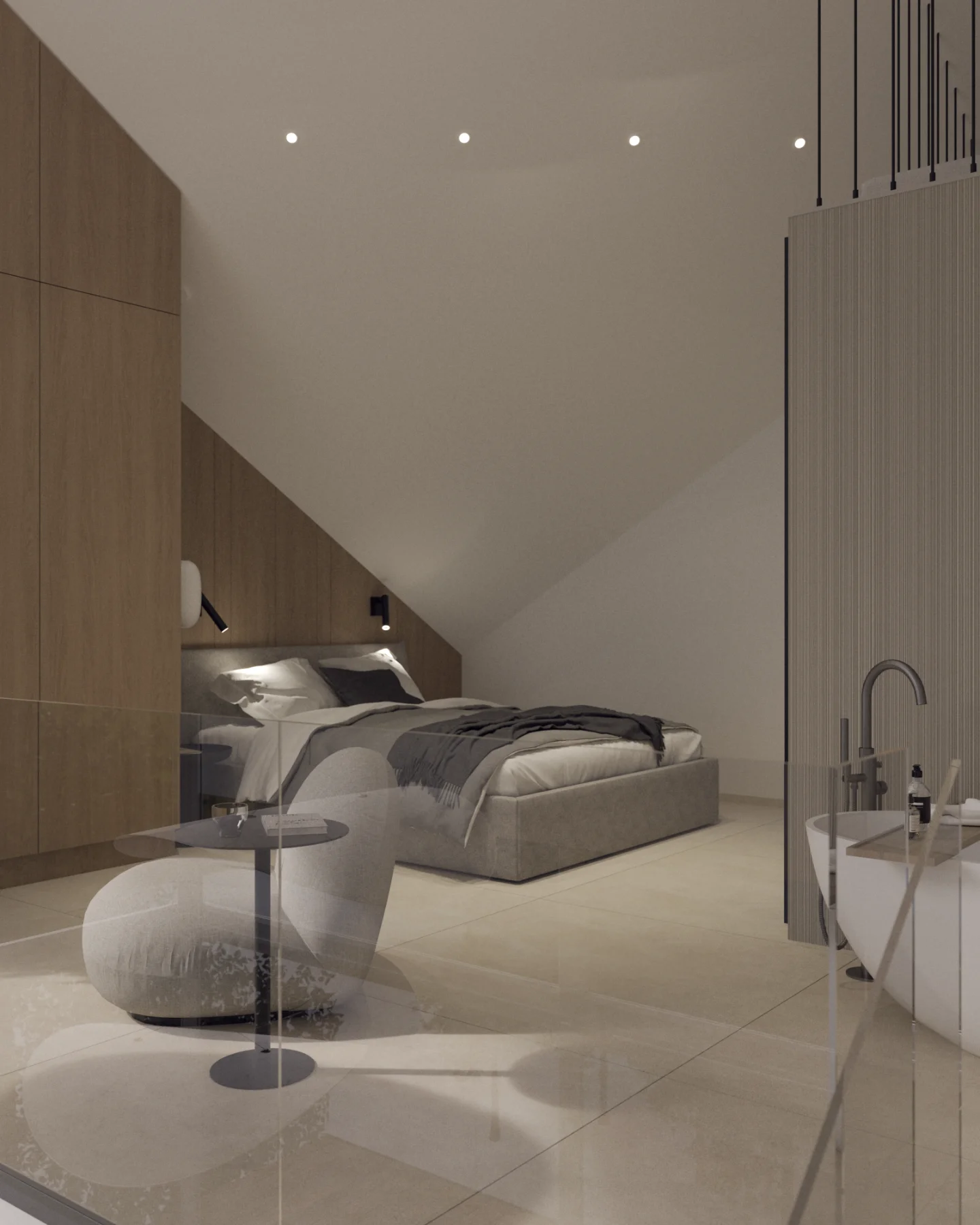 Wnętrza w odcieniach szarości, grafitu i czerni. Nowoczesny minimalizm z industrialnymi akcentami, który łączy chłodną elegancję z naturalnym ciepłem dzięki użyciu drewna i kamienia. Styl skandynawski z nutą nowoczesności..